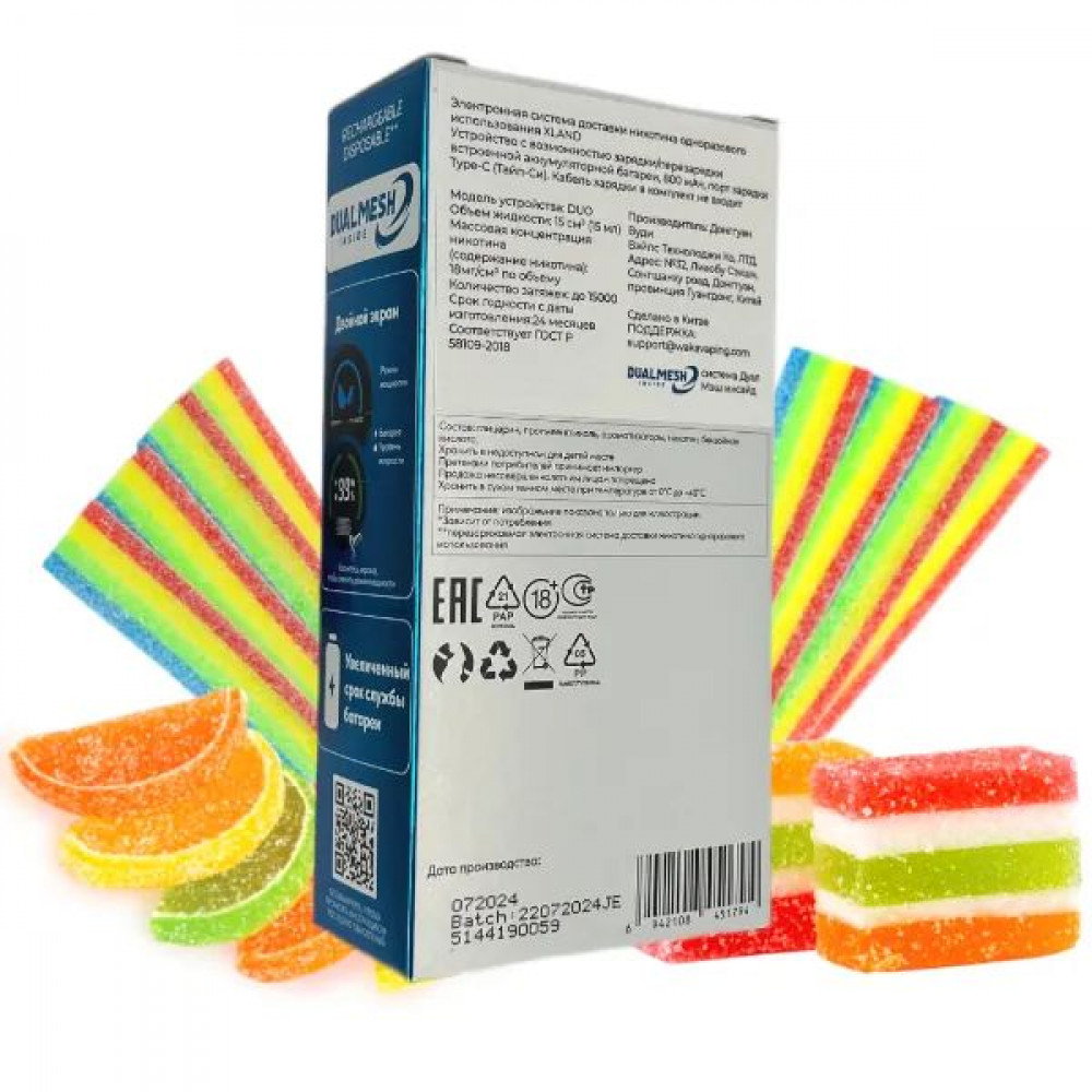 Технические характеристики WAKA XLAND 15000 - Кислый Мармелад